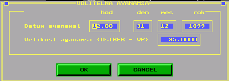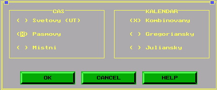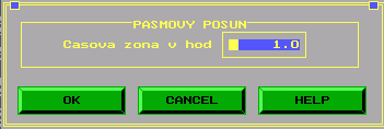 Časová pásma směrem na východ od 0° jsou v našem případě kladná, západní záporná. Chceme-li pracovat ve středoevropském čase (SEČ), najedeme myší na modrý obdélník s údajem 0.0 a napíšeme hodnotu časové zóny 1.0. Po potvrzení klávesou OK se naše volba uloží.