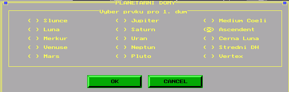 Nastavení zobrazení provádíme pomocí Panelu 12, který na obrazovce dostaneme po výběru položky NASTAVENÍ ZOBRAZENÍ HOROSKOPU z nabídky menu NASTAVENÍ (případně pomocí klávesy F6).