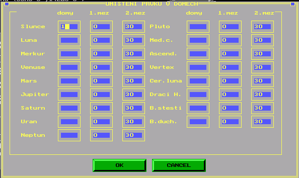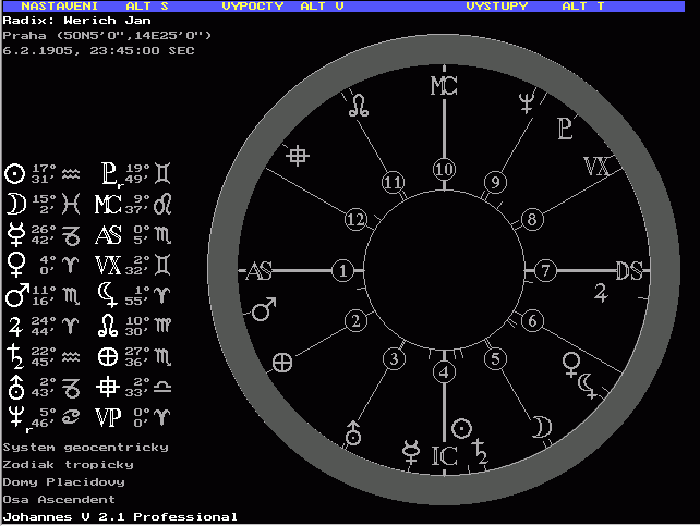 Kombinací kláves <SHIFT><M> mažeme odvozený horoskop.