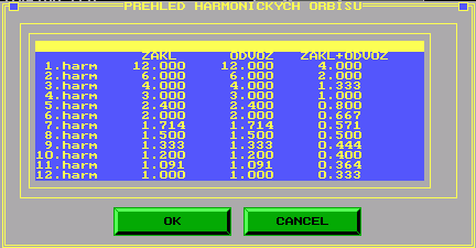 Přehled harmonických orbisů pro všechny tři možnosti spatříme v příslušné tabulce, která se nám automaticky otevře.
