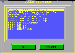 Klávesou F8 dostaneme panel s VÝBĚRem základních typů TISKÁREN.