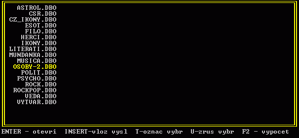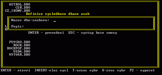Na obrazovce sledujeme postup výpočtů, pak stačí již jen zvovu vstoupit do databází klávesami <SHIFT> <X> a F8, databázi otevřít ENTERem a prohlížet.